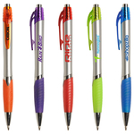 •Retractable pen with slightly contoured barrel •Transparent colored clip with matching rubber grip •Chrome plunger, ferrule & ring •Black medium point High-quality Glide-Write™ ink.