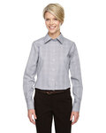 3.4 oz., 55% cotton, 45% polyester; Fine yarn count shirting; True Non-iron performance straight from the dryer; stain release finish; Active Fit; Patented pucker-free taped seams; Fused collar, cuffs, and placket; Split back seam with bias cut back yoke; straight collar; pearlized buttons; front and back princess seams for a flattering feminine fit; bust darts for a flattering feminine fit;