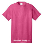 • Neon Green, Neon Pink, Neon Yellow, Heather Athletic Maroon, Heather Purple, Heather Royal, Heather Navy, Heather Dark Chocolate Brown and Dark Heather Grey are 50/50 cotton/poly.