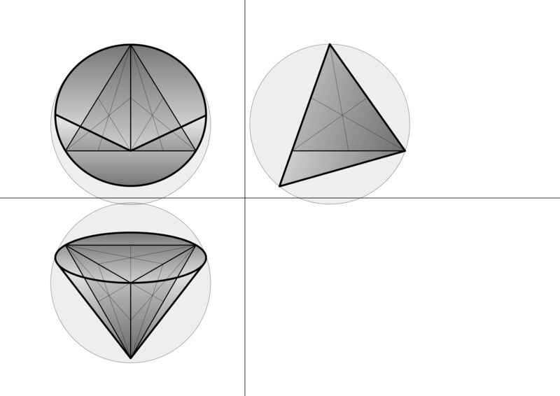 Kegel 2 umhuellt Tetraeder Parallelprojektion